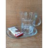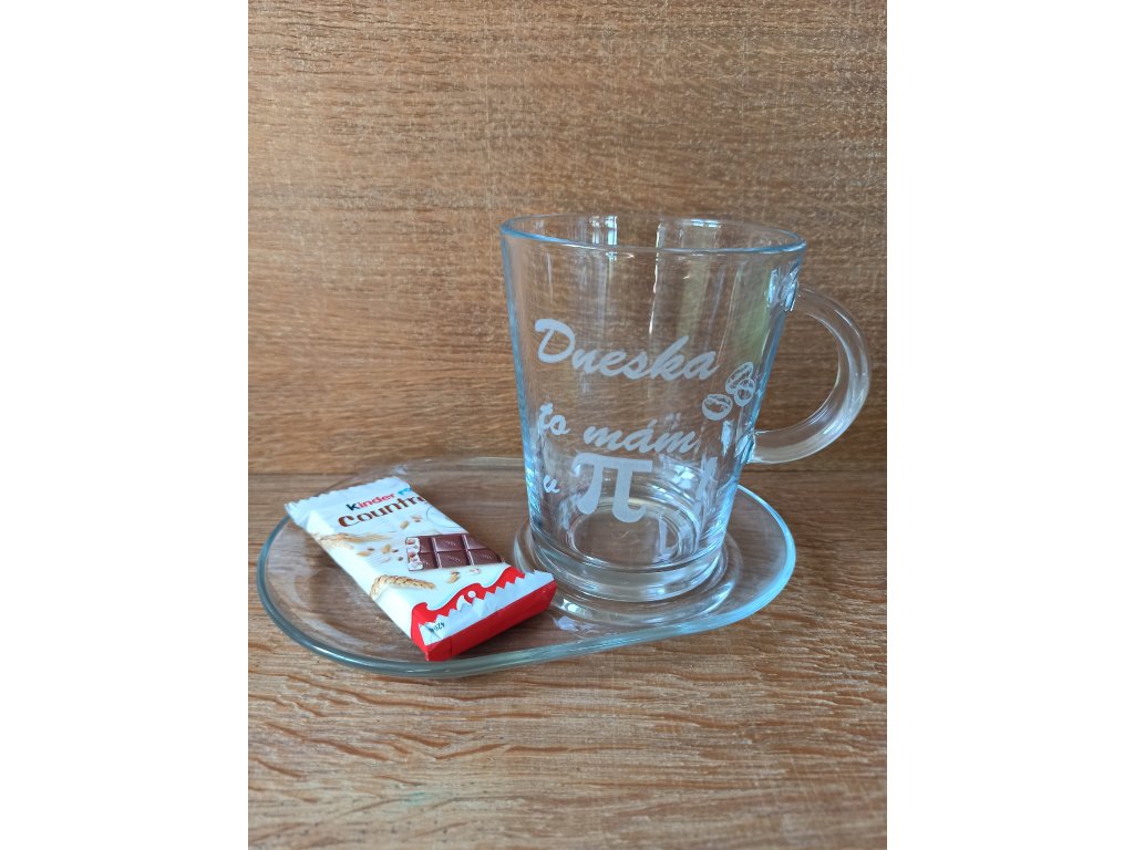 Sklenička na kávu se skleněným podtáckem pro chvíle pohody, která udělá radost každému, kdo má rád tento nápoj. Potěšte sebe nebo své kamarády touto sadou na kávu s nápisem, který se hodí na pracovní stůl.